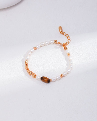 The Golden Eye Bracelet brings together the natural power of tiger’s eye and the timeless elegance of freshwater pearls. Accented with warm gold-toned details, this piece strikes the perfect balance between earthy strength and soft sophistication. Wear it alone for a subtle glow or stack it for a bold, bohemian vibe.